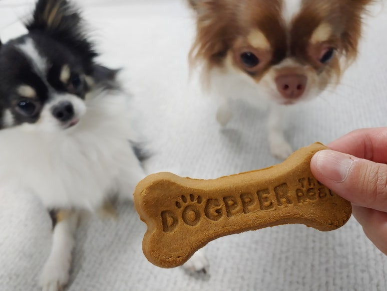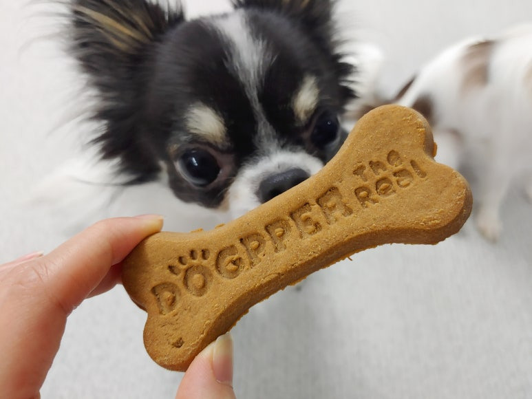 한 상자에 뼈다귀 모양 쿠키가 2개