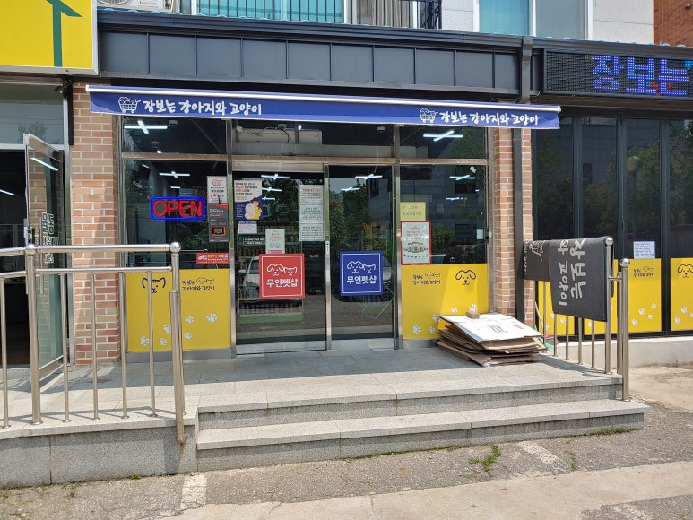 식당 옆 무인 장강고에서 간식을 사주었어요.