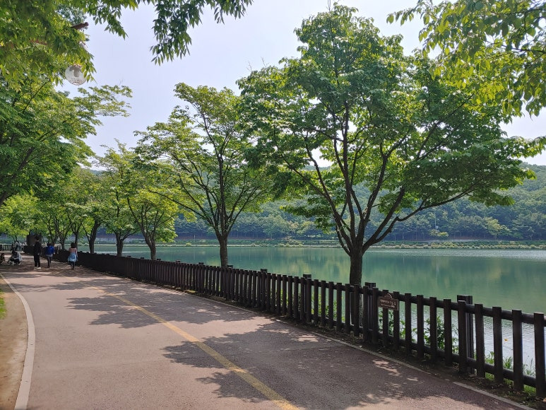 율동공원은 중앙에 분당 저수지를 두고 그 둘레길을 산책할 수 있어요.